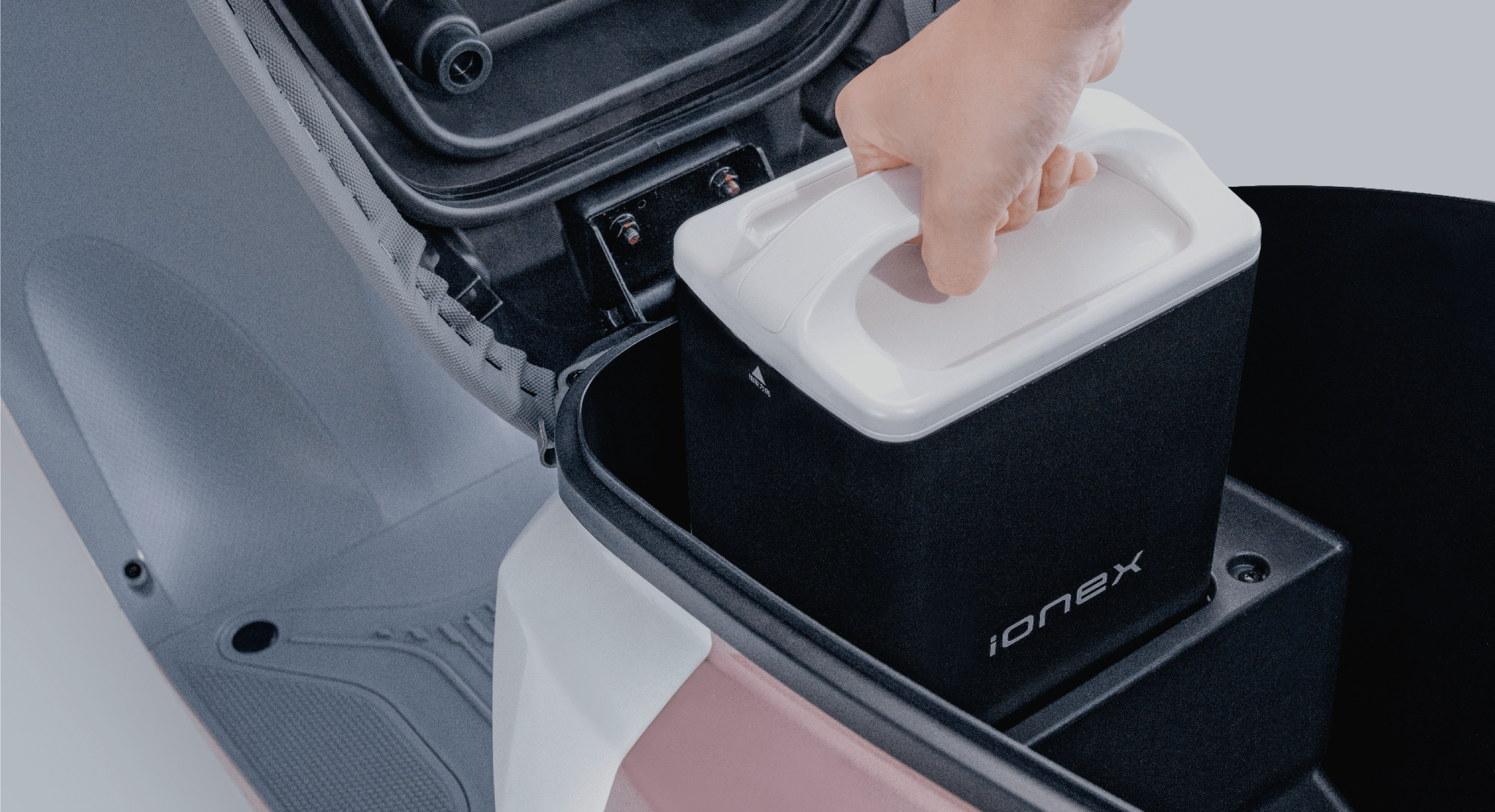 IONEX i-One is an EV scooter mainly aimed at the urban commuters and fleet delivery riders. I-One supports these riders by providing flexibility, reliability, and accessibility to their needs, such as storage and charge points for their mobile and USB connected devices, 3 hooks for bags and equipment, the capability to add a mount for satnavs, and under seat storage capable of storing multiple delivery orders. The i-One’s comfortable suspension also helps to put the riders mind at ease knowing the quality of their storage will remain high! This bike is also perfect for short distance commuters, learner riders and city workers!